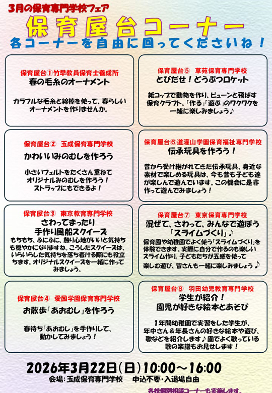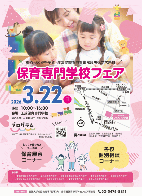玉成保育専門学校にて保育専門学校フェアを開催します🌈